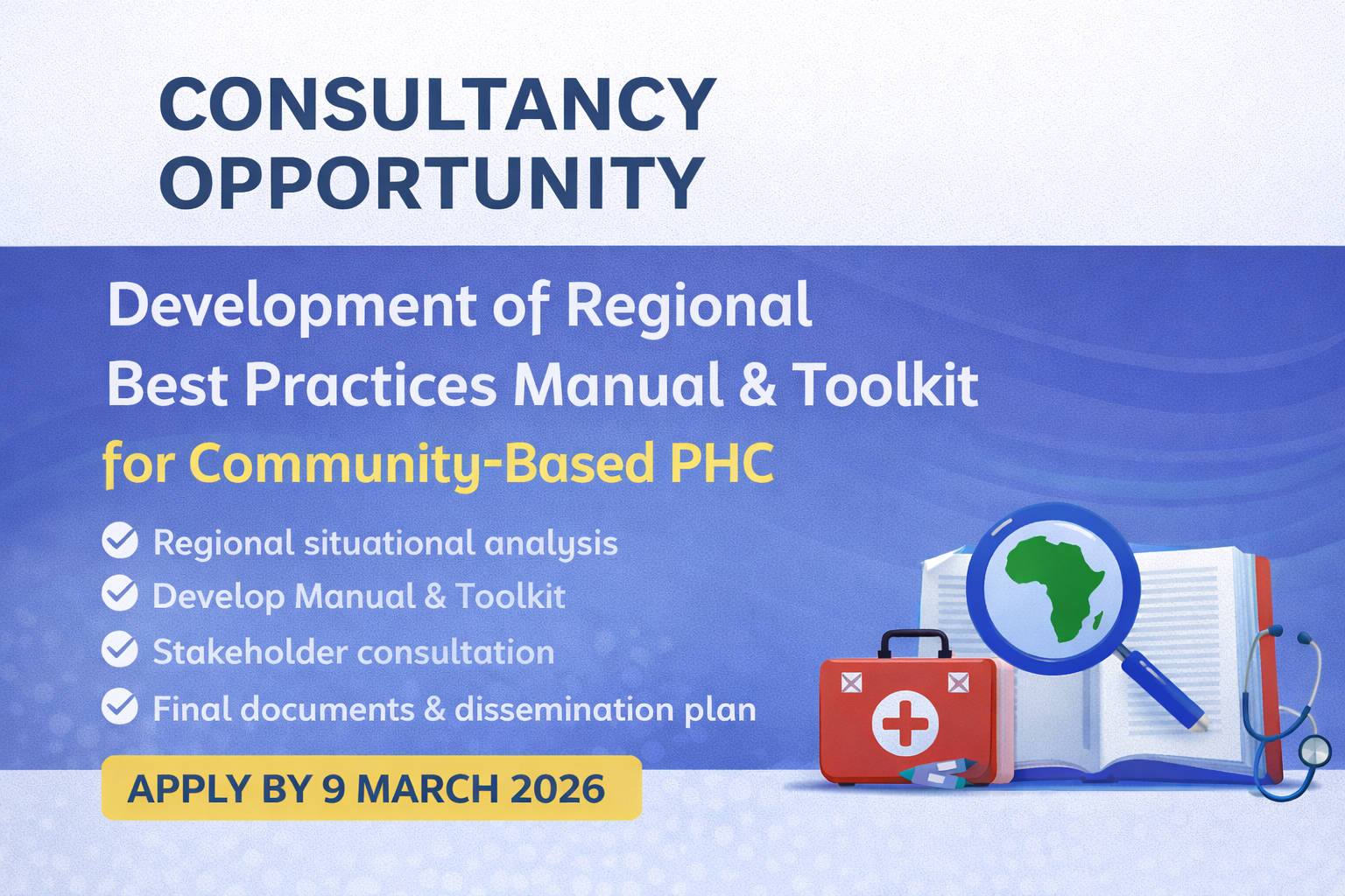 The East, Central and Southern Africa Health Community (ECSA-HC) invites qualified individual consultants to apply for a consultancy to support the development of a Strategic Management Framework and Operational Plan for the ECSA-HC College of Health Sciences (CHS) Secretariat.